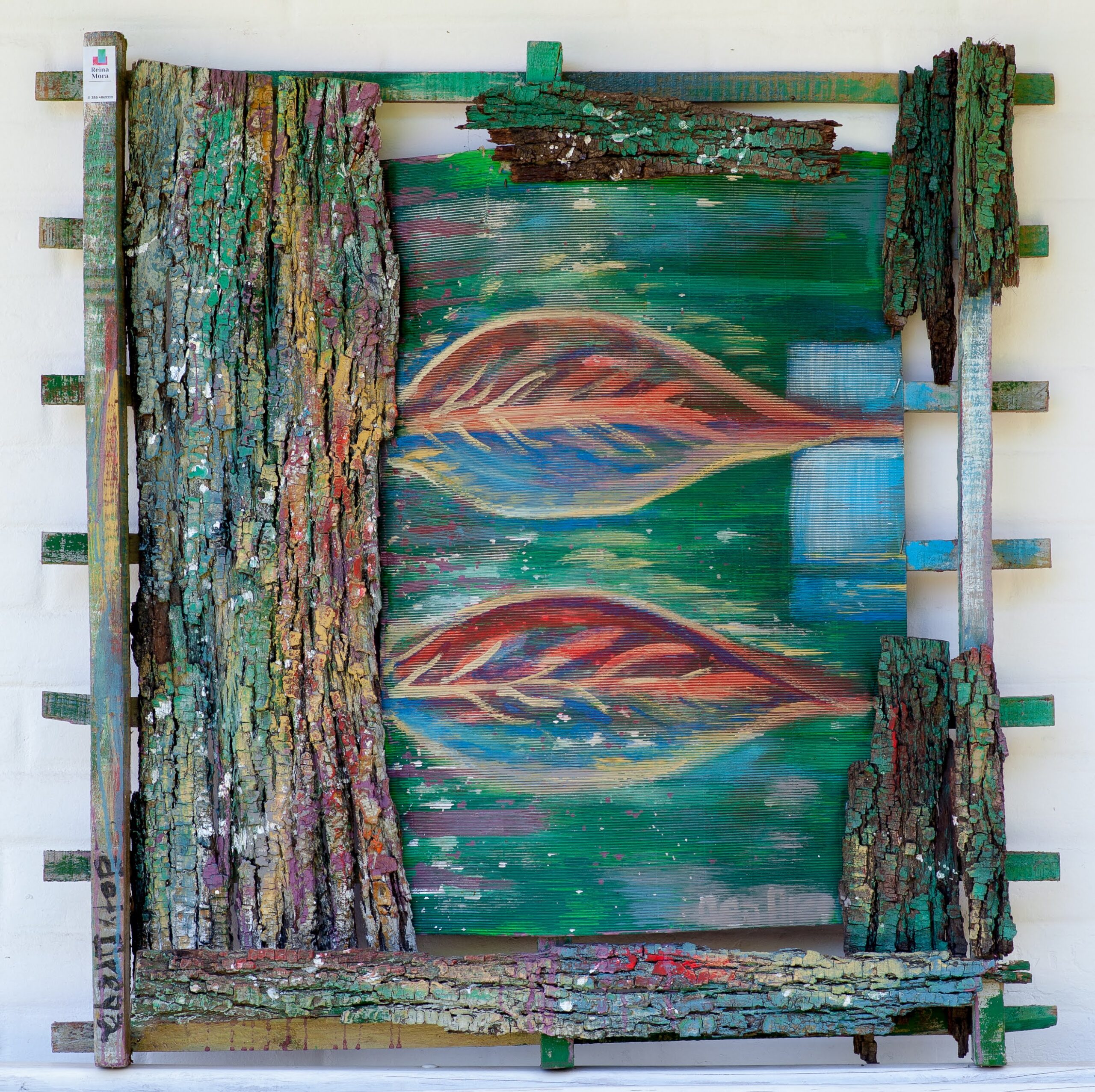 Esquema compositivo simple. Se aplicó paleta de verdes, colores adyacentes, clave media, figuras simples y texturas. Relieves de impacto visual y espacio que se desliza transitando las superficies, con emoción y placer.