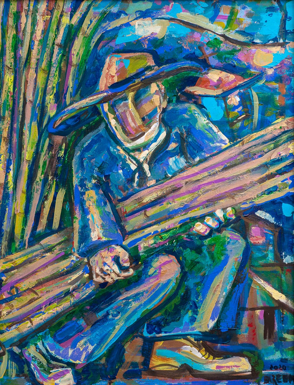 Figura representativa de cultural de Jujuy. Esquema de diseño clásico con uso de colores fríos, pinceladas sueltas, empastes y contrastes de complementarios en el uso del color.